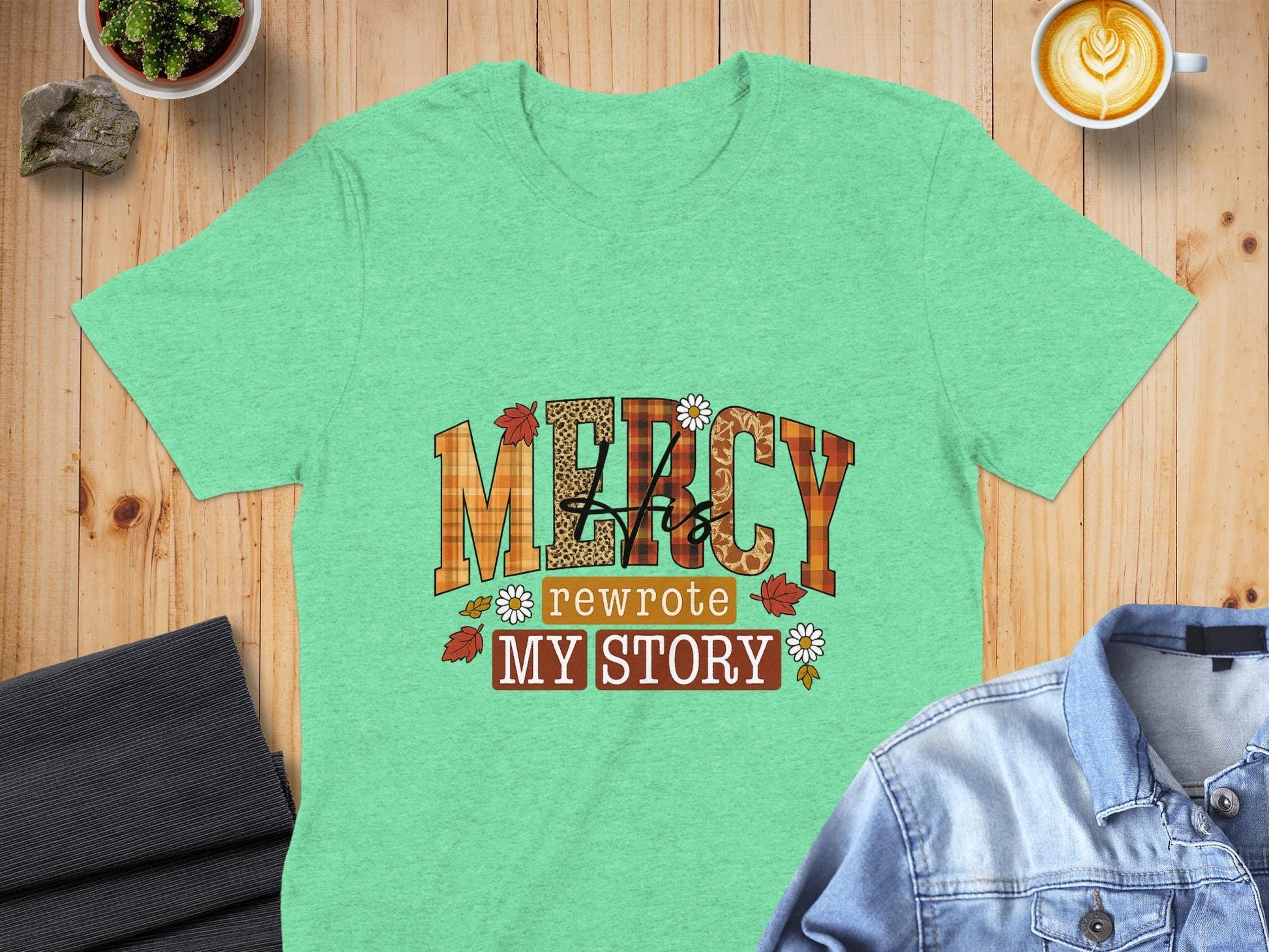 Mercy Rewrote My Story T-Shirt, Christian Shirt, Floral Tee, Religious Apparel, Inspirational Shirt, Trendy Top, Faith Shirt, Gift Idea