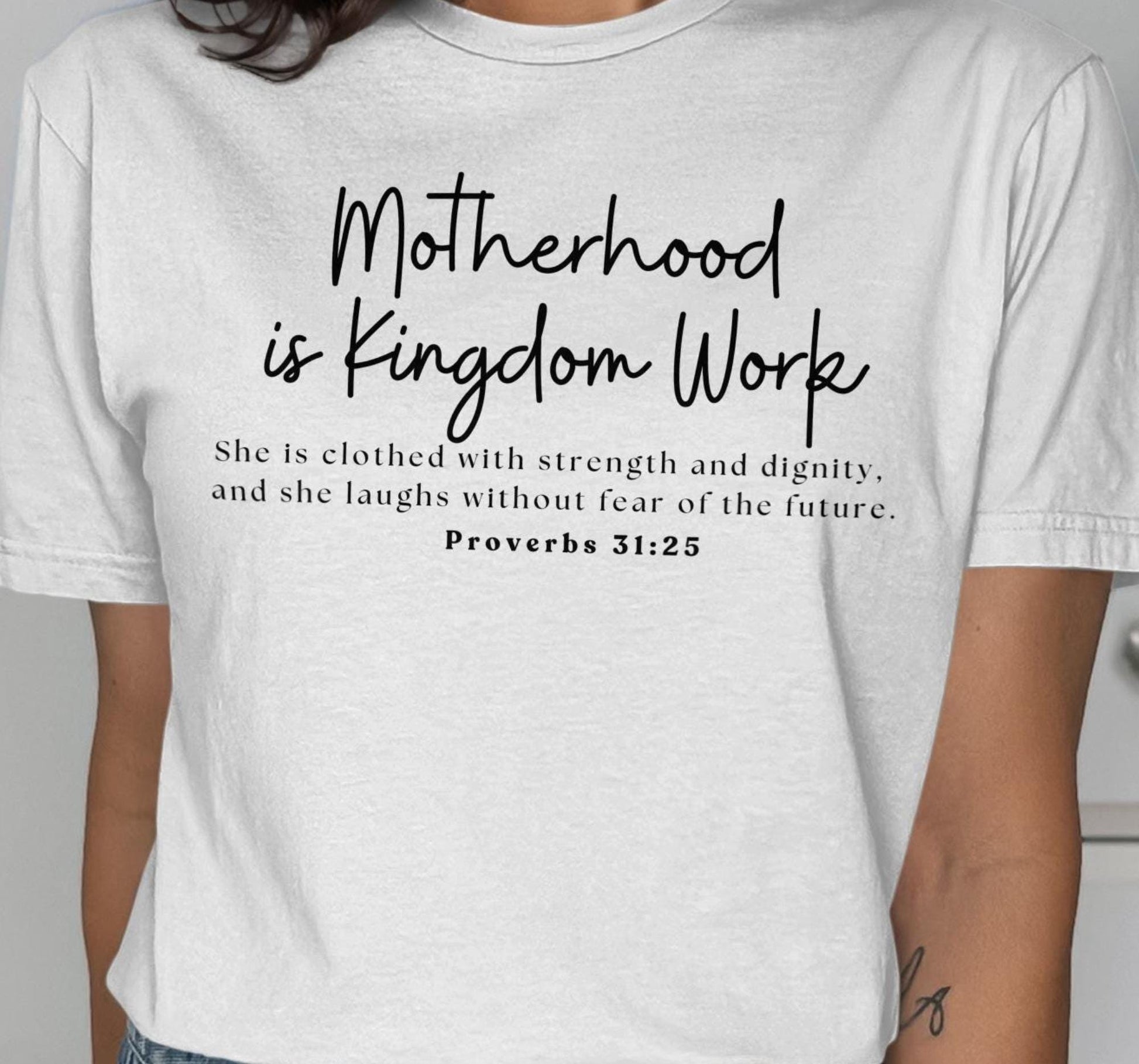 Motherhood is Kingdom Work T-Shirt, Proverbs 31 25 Shirt, Christian Mom Tee, Inspirational Shirt, Mom Life T-Shirt, Gift for Mom