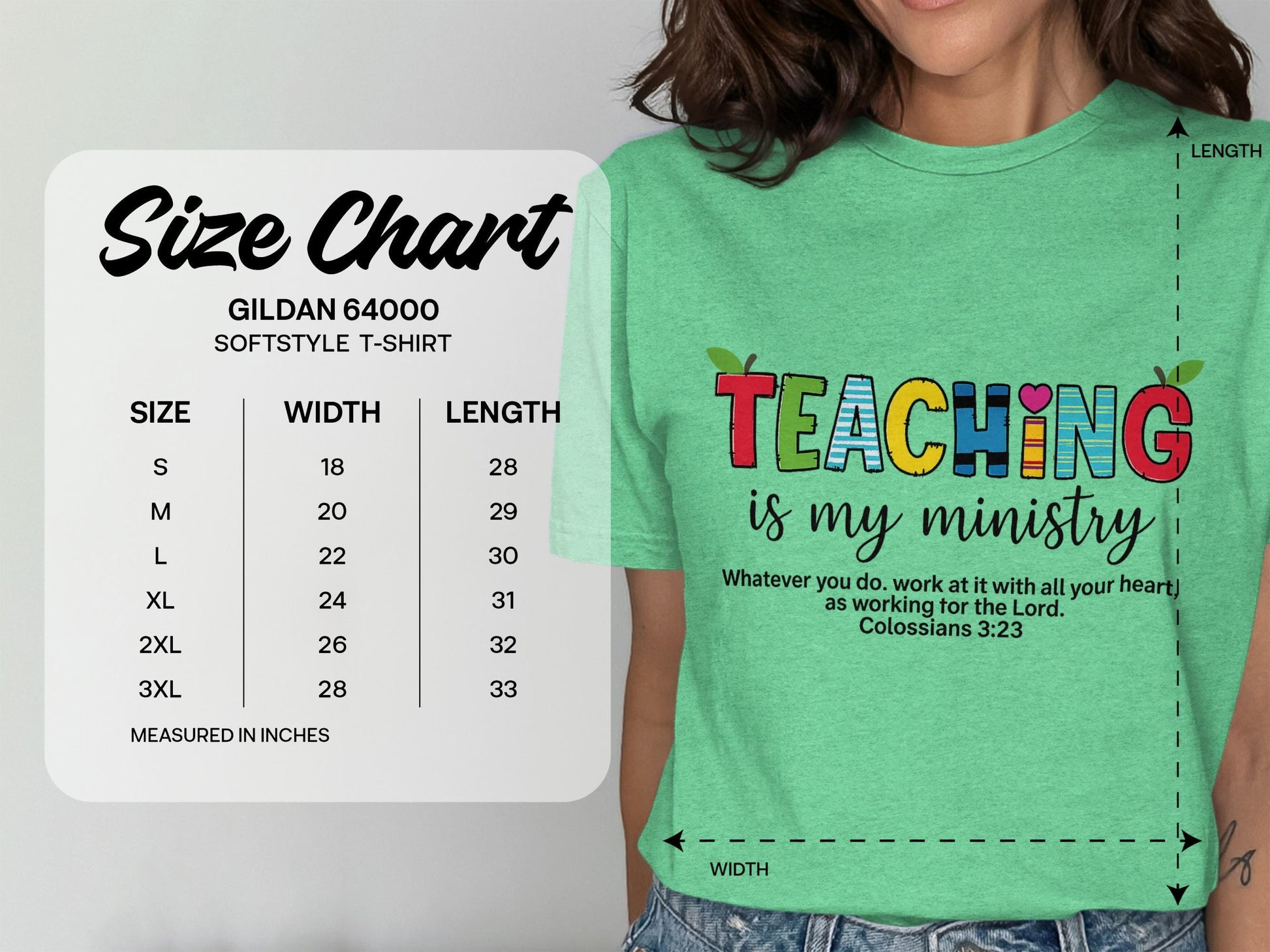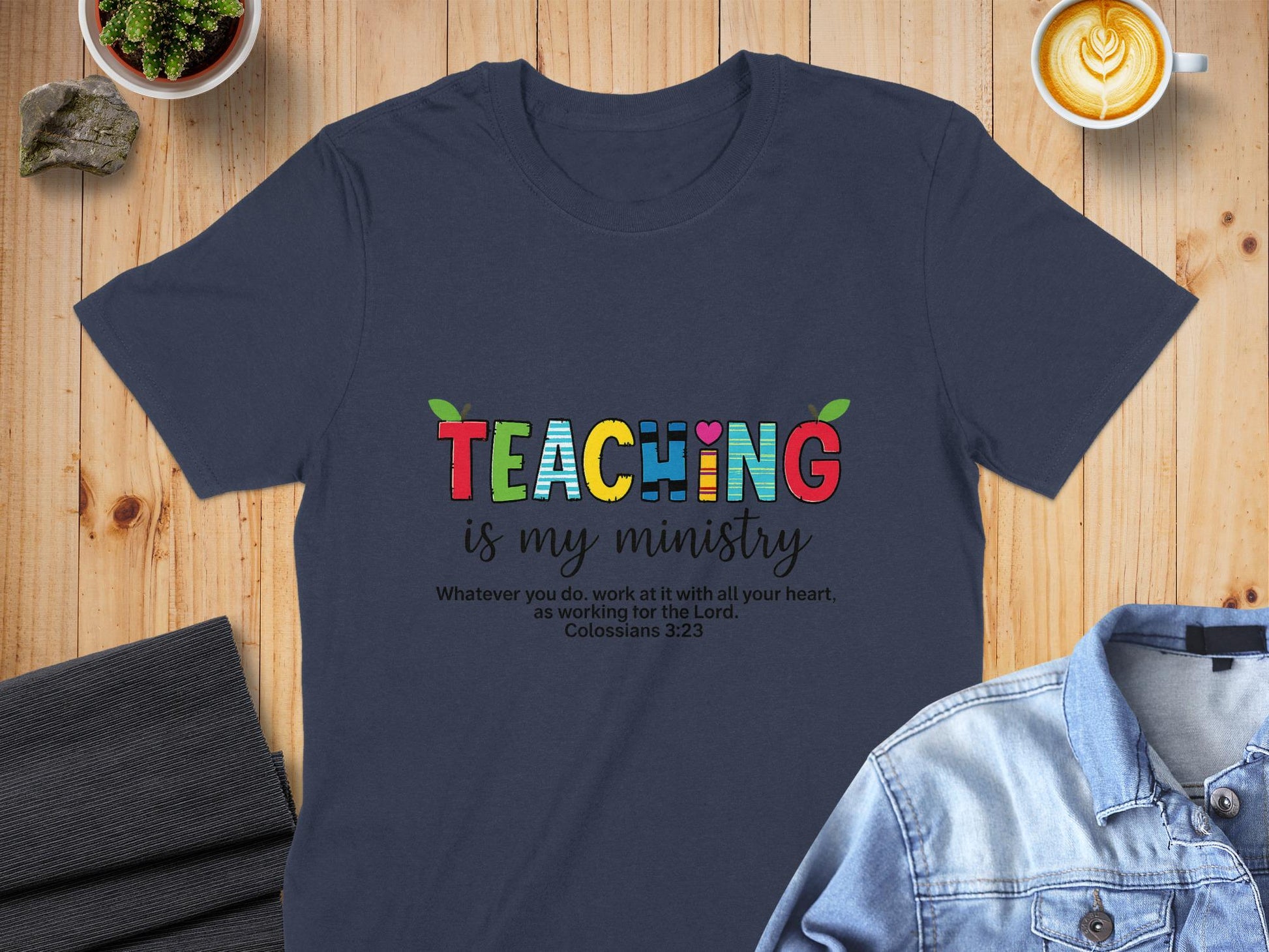 Teaching is My Ministry T-Shirt, Christian Teacher Tee, Inspirational Gift, Colorful Teacher Shirt, Colossians 3 23, Teacher Appreciation