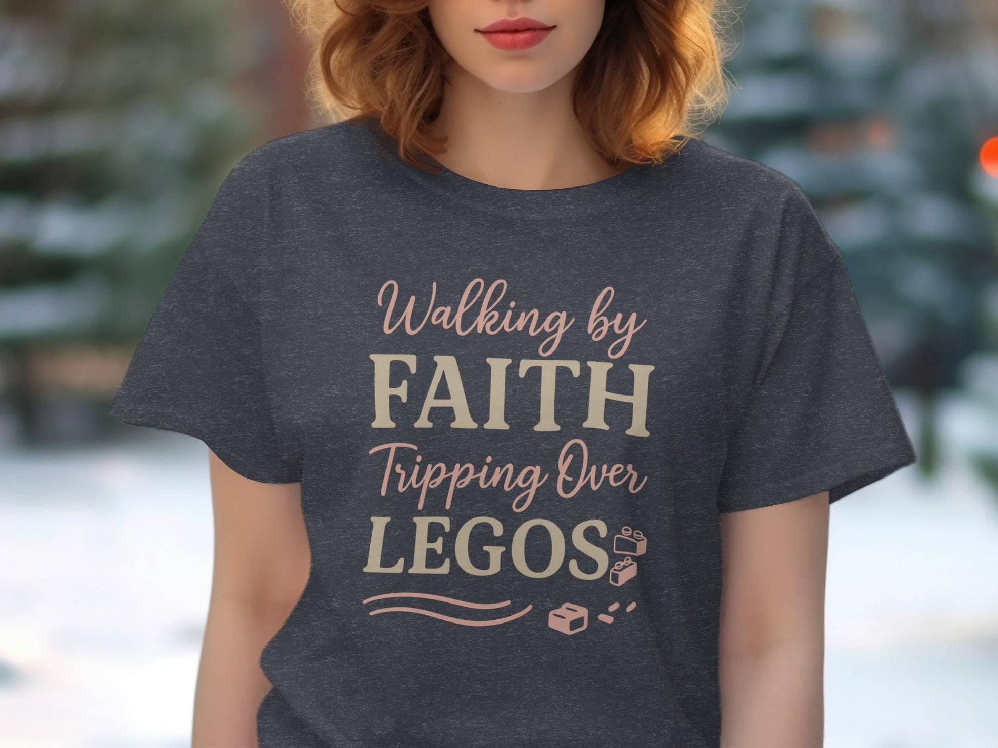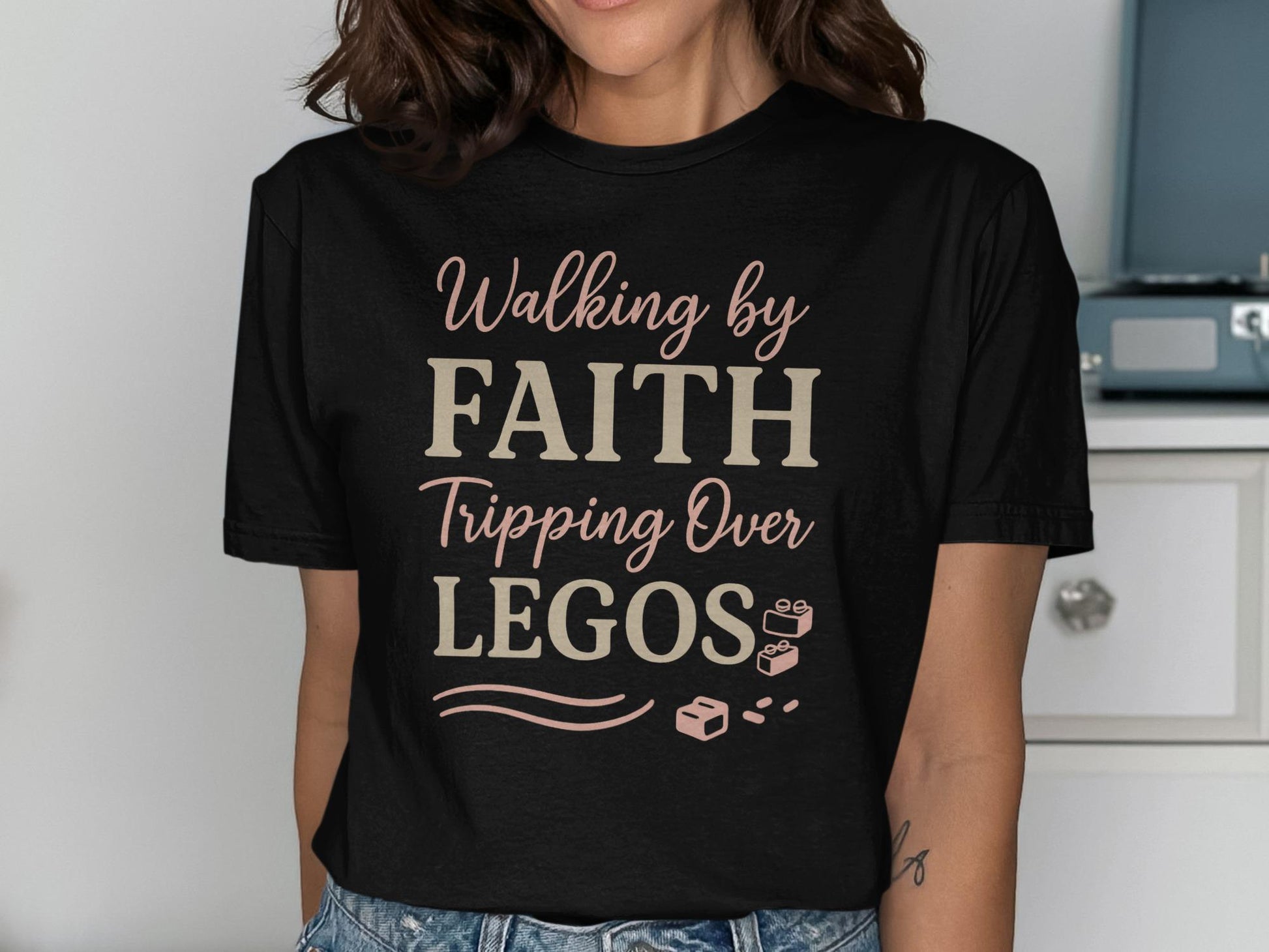Walking by Faith Tripping Over Legos T-Shirt, Building Blocks, Christian Humor Tee, Parent Life Shirt, Gift for Mom Dad